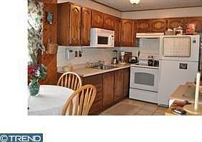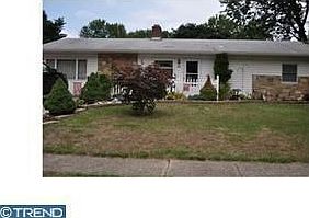 Pennsbury stone-front Levittowner 3/4 bedroom, large eat-in kitchen w/wood cabinets, dishwasher, ceramic tile floor, living room w/fireplace & hardwood floors. Heater replaced. Beautiful landscaping w/ small pond & above-ground pool.