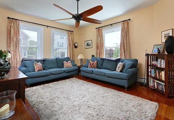 On side street in the heart of Roslindale Village, this extensively updated home is only 1/4 mile to the commuter rail station, shops & restaurants. The property offers an amazing level, grassy backyard, making this home a true rarity in any Boston neighborhood. Newly-installed decorative fieldstone walls and perennials line the front walk for plenty of curb appeal. A spacious mudroom leads to the foyer, accessing all of the rooms on the first level. The airy living and dining rooms are open to each other, and the dining room has decorative fireplace. Off the dining room is the updated kitchen with granite counters, stainless appliances & a small breakfast area. A powder room and glass-paned door to the recently built deck complete this level. On the 2nd level are four good-sized bedrooms and an updated full bathroom. The 3rd floor has another bedroom, an office & the 2nd full bath. In the basement are the updated systems and laundry. 2016 HVAC systems incl. central air & a gas boiler