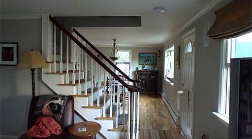 Beautifully updated home featuring a custom kitchen with quartz counters, cherry cabinets, mahogany flooring and ss appliances opening to a large mahogany deck and fenced in back yard. Master suite with cathedral ceiling, large walk in closet, and bath featuring Carrera marble vanity and flooring. Creative use of space includes an additional walk in closet and office space with built in cherry cabinetry.