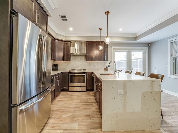 Newly constructed at the end of 2017, this home comes with a PRIVATE 2 CAR GARAGE and an over sized PRIVATE BACKYARD - truly rare find for the area. Beautiful 2 bed/2.5 bath condo featuring 700+ sqft outdoor space. Amazing open concept living room and kitchen that is fully equipped with SS appliances and quartz counter tops. The first floor also features large french doors overlooking the beautifully landscaped backyard. The second-floor bedrooms are bright and airy with both rooms having an en-suite bathroom and spacious closets. Additional features include Douglas-Fur lumber, "Blue Skin" moisture barriers, insulated HVAC duct work, fully equipped with in-unit washer & dryer, video intercom, central vacuum, central HVAC, Andersen windows, oak wood floors upstairs, and designer wood grain tile flooring downstairs, masonite designed interior doors, as well as crown moldings throughout. Prime Jersey City Heights location with close proximity to revitalized Central Ave and Palisade Ave for a variety of groceries stories, shopping, and dining options. Quick and easy commute to NYC with the bus just few steps away and walkable to the Light Rail station. Enjoy Jersey City's 5-year "new construction" tax abatement; manufacture warranties, as well as a 10 year, limited home warranty provided by the developer.