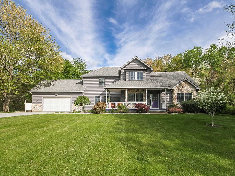 Welcome to a private, one owner, custom Colonial retreat. Soaring windows greet you with natural light, framing park-like property.Duel sided fireplace serves as the focal point for both great room and cook's delight eat-in kitchen. Expansive granite counters and flow to the oversized patio are ideal for entertaining. Three bedrooms and large office with bonus room offer many living arrangements. Extensive lower level to finish as you see fit. Close to TSP, schools and shopping.