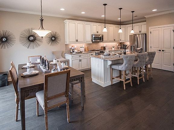 The Hopewell villa features 2,496 sq. ft. of lavish living space that includes three bedrooms, two-and-a-half baths and a two-car garage. The first-floor master suite features two spacious walk-in closets and a luxurious master bath. The flex room on the first floor can be converted into an office, playroom or exercise room. Other highlights include a fireplace in the great room and an expansive second-floor loft.