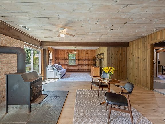 Welcome to 43 acres of stunning woodlands, featuring 1,400' of road frontage and waterfront along Black Creek. This property is a must-see. It includes two adjacent living spaces: a cozy cabin overlooking a pond, open meadows, raised garden beds, an orchard, and plenty of trails. The main house offers 5,150 sq. ft. of living space, starting with a charming covered patio. Inside, the open living room centers around a large woodstove—perfect for winter. The updated kitchen is bright, with new flooring, appliances, and plenty of space. A spacious family room with slate flooring and large windows provides natural light and property views. The elegant primary bedroom and bath feature high ceilings with views of the orchard and wildlife. There are 2 additional bedrooms and 2.5 bathrooms on the first floor, plus 2 large bedrooms upstairs with ample closet space. The second house, 1,477 sq. ft., offers a fireplace, 2 bedrooms, 1 bath, and a kitchen. A 2-car detached garage with electricity completes the property. There’s so much to love here!