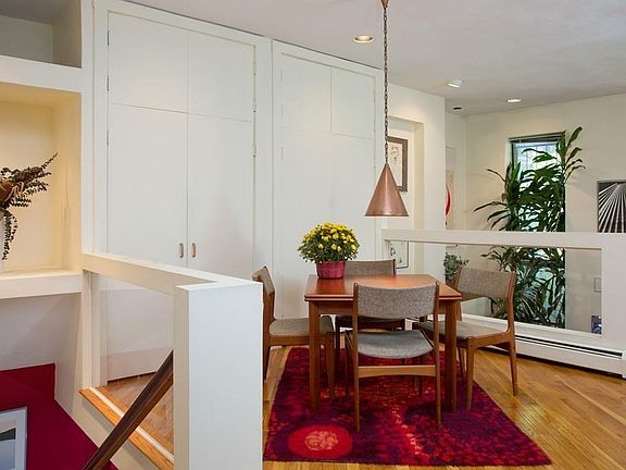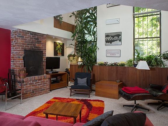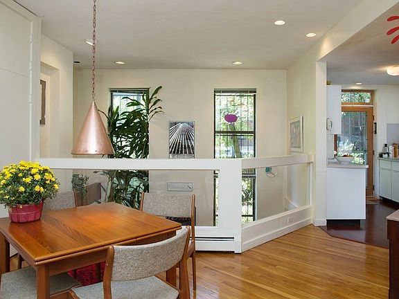 When you walk into this duplex condo the feeling is drama and spaciousness. There are 2 story high windows facing the private garden that brings in great light. The upstairs has a large bedroom with original detail, a galley kitchen with access to the garden, a spacious dining area and lots of closets. A stairway down leads to the living area with a fireplace and a study/guest space with low ceilings. There is a washer/dryer on this level. The amazing feature for the unit is 3 parking spaces. The unit has 2 exclusive use parking spaces with room for 3 cars, side by side. An unusual space awaiting your special touches.