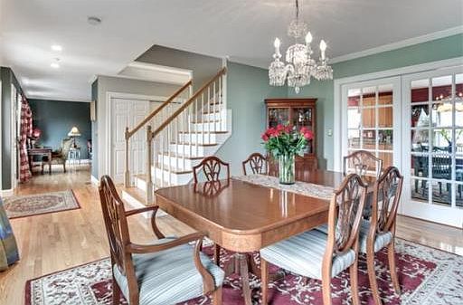 Grand Colonial located on a very private Cul-De-Sac. This nicely maintained home features incredible views and entertainment sized rooms. Including a large front to back, step down, family room with fireplace, hardwood floors, ceiling fans and sliders to deck. The kitchen is appointed with upgraded stainless steel appliances, a large breakfast bar island and granite counters. French doors lead from the breakfast area to a formal dining room with crown molding . Formal living room or 1st floor office. The 2nd floor includes a great, sun drenched masterbedroom with sitting area, paladian windows, skylights, 2 walk in closets, whirlpool tub and tiled shower. 3 other large bedrooms finish the upstairs along with an upper foyer and feature window. 3rd floor unfinished walk up attic, Oversized 2+ car garage, central air, walk out basement and nice rear yard complete this must see home.