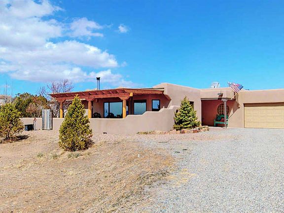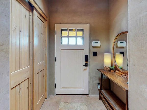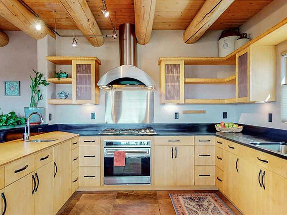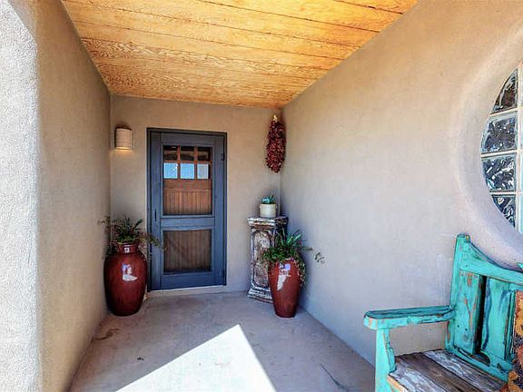 Canyon Road meets Eldorado.... Imagine the luscious beauty of American Clay plaster, the texture and warmth of sandstone tile floors and radiant heating, artistically pleasing, comfortable living spaces, a stunning chef's kitchen, crafted with the finest natural finishes, luxurious spa-like bathroom sanctuaries, and amazing outdoor spaces with magical mountain views. You will find it all in this three bedroom, two bath home featuring, open kitchen/dining/ living areas, a spacious den/studio/family room, gallery lighting throughout, vigas, a wood burning kiva fireplace, adobe accent walls, refrigerated air in select rooms, a two car garage, walled and landscaped front and side courtyards, perfect for entertaining, and a fenced rear yard for pets. There is no better way to experience Santa Fe than from this a one of a kind, exceptional home. The Eldorado Community features miles of improved trails, a community center/clubhouse with pool and athletic facilities, a dog park, restaurants, shopping, senior center, library, and a fantastic community school.