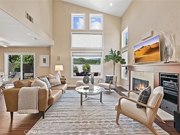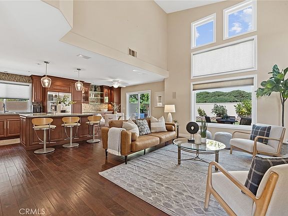 OPPORTUNITY KNOCKS IN THE HIGHLY SOUGHT AFTER COMMUNITY OF FOOTHILL RANCH! BEAUTIFULLY REMODELED FROM TOP TO BOTTOM & IDEALLY SITUATED ON A WIDE, POOL-SIZED LOT, THIS STUNNING HOME IS READY FOR MOVE-IN. Enter through the gated front courtyard to soaring ceilings and walls of windows showcasing this open-concept plan allowing for easy living and entertaining. The gorgeous chef's kitchen is a show stopper and has been thoughtfully redesigned offering beautiful custom cabinetry, granite counters with custom tile backsplash, Bosch induction cooktop, oven and range hood, Fisher Paykal double drawer dishwasher, microwave drawer, wine refrigerator, serving station with shelving and custom lighting and a center island with bar seating. The great room features a custom designed fireplace with limestone tile and wood mantle. Engineered hardwood flooring, recessed lighting, surround sound, ceiling fans, vinyl windows, custom window coverings and more. The upper level offers a primary suite with a remodeled, spa-caliber master bathroom with jetted tub and dual sinks. 2 spacious secondary bedrooms share a gorgeous, remodeled bathroom with walk-in shower. The spacious backyard is perfect for easy, outdoor living or sophisticated entertaining with multiple seating areas, artificial turf, an impressive putting green, planter boxes with irrigation and lovely, mature landscape. The 2 car garage with a newer garage door and opener has a utility sink, storage cabinets and offers extended space which is a huge plus for convenient parking plus storage/work space. This home has been meticulously maintained and is a 10+++ Enjoy the Foothill Ranch lifestyle with a community pool, spa, clubhouse, numerous parks, library, hiking and biking trails. Just minutes to shopping, dining, entertainment, and Foothill Ranch Elementary. Close to Toll Roads, 5 FWY and the Irvine Spectrum Center.