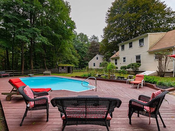 YOU WILL LOVE THIS DELIGHTFUL 2-STORY CAPE COD AT THE END OF A QUIET CUL DE SAC THAT COMFORTABLY BLENDS MODERN CONVENIENCES WITH OLD-WORLD CHARM IN HISTORIC HYDE PARK.THIS 1,670 SQ FT , 4-BEDROOM, 2-FULL BATH HOME HAS NEW SPLIT RAIL FENCING THAT SECURELY LINES A LARGE BACK YARD WITH IN-GROUND POOL (NEW POOL PUMP)AND PRIVATE CABANA FOR ENTERTAINING .THE BACKYARD OASIS OVERLOOKS FDR's NATIONAL FEDERAL FOREST. PROPERTY INCLUDES SHED AND DETACHED GARAGE. NEW LAMINATE & TILE FLOORING THROUGHOUT ENTIRE HOUSE. NEW AND UPDATED LIGHTING FIXTURES WITH FRESH PAINT IN EVERY ROOM. NEW KITCHEN UPDATES/APPLIANCES INCLUDE REFRIGERATOR, STOVE/ RANGE HOOD, TILING, COUNTER TOPS , MICROWAVE AND CABINETS.DINING ROOM WITH BUILT-IN CURIO CABINETS. COZY UP TO THE FIREPLACE IN THE LIVING ROOM EVERY NIGHT WHILE DRIFTING OFF TO SLEEP TO THE SUBTLE SOUNDS OF THE FOREST. WALKOUT BASEMENT INCLUDES NEW WATER HEATER. All OF THIS SITUATED IN A CONVENIENT,FRIENDLY NEIGHBORHOOD THAT SITS NEAR NEIGHBORHOOD FDR'S HOME AND PRESIDENTIAL LIBRARY AND ONLY MINUTES FROM METRO TRAINS, HIGHWAYS, HOSPITALS, CIA AND MARIST. CALL NOW. THIS WILL NOT LAST !!!!