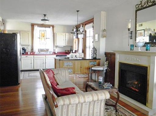 Lovely 1879 Mansard Colonial has been up dated over the years but retains it warmth and charm. Lovely sitting area between kitchen and dining area in turret has a fireplace for additional atmosphere. Large rooms, High ceilings, and original wood fls. through out the house maintain the feeling of this period. The large windows bring in plenty of light. The bed rms are good sized and the Master has double doors into the Study beside it. This Grand old Dame does need some exterior work, Paint, roof and the like. which is reflected by the lower price.. Come and take a look I know you will be charmed.
