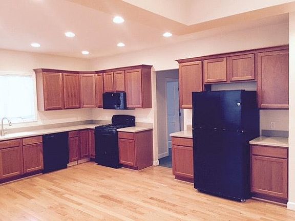 Newer Ranch on a large lot. Very spacious home. Excellent condition. 3 large bdrms, 2 car attached garage. Open floor plan, 9' ceilings w/ tray ceiling in Great room. Hardwood floors throughout. Gas fireplace, Cherry Kitchen w/ Corian tops. 2 full tiled baths (one shower, one bathtub), Master suite has a double bowl sink. Gorgeous Large Trex deck off Kitchen/Master bedroom. A/C included. All appliances Included, Refrigerator, stove, microwave, dishwasher. Full Basement. 3rd bedroom can be office. Tenant Responsible for all Utilities Tenant Responsible for Lawn care and Snow removal.