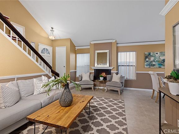 You will be charmed by this delightful Rancho Santa Margarita home. The front yard is perfectly landscaped with evergreen turf and a mature, lush palm. Step into the foyer and you’ll be greeted by the romantic gas fireplace oozing with warmth. On the main level are the formal living and dining rooms, the kitchen, the family room and a powder room. The direct garage access is just past the powder room making it easy to bring groceries and household items into the home. The kitchen has granite counter tops, a gas range, fridge, microwave, dry bar and a window over the sink allowing the sunshine to brighten the room. The adjoining cozy family room provides easy access to the back patio. With a large, paved area, gas BBQ & fire pit, this is the ideal atmosphere for celebrating and socializing with friends & loved ones. The bedrooms are all upstairs and there is new carpet in the hallways & bedrooms. The spacious master suite is on the back of the house and has an ample walk-in-closet. The master bathroom has a wrap-around vanity with 2 sinks, excellent lighting & mirrors, plenty of drawers, a walk-in shower, and a linen cabinet. The secondary bedrooms are on the front of the home, and both have wonderful views of the mountains. The room on the right has very high ceilings, a majestic window and a walk-in-closet. The room on the left has a large window and is situated near the guest bath. There is another linen closet in the upstairs hallway. This home is powered by solar, you will appreciate the energy savings. Rancho Santa Margarita is beautiful city and this home belongs to the SAMLARC HOA. Some of the amenities available are swimming pools, parks, The Beach Club, Clubhouses, Dog Park, Picnic Areas, Tennis & Basketball Courts, walking trails and the RSM Lake. It’s time to write that offer! You are finally home!