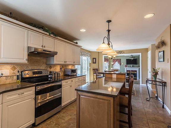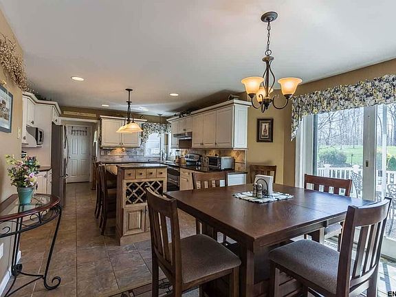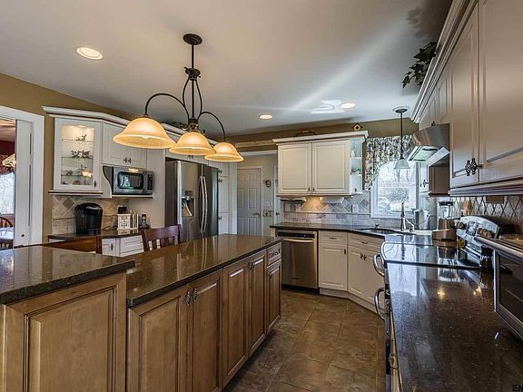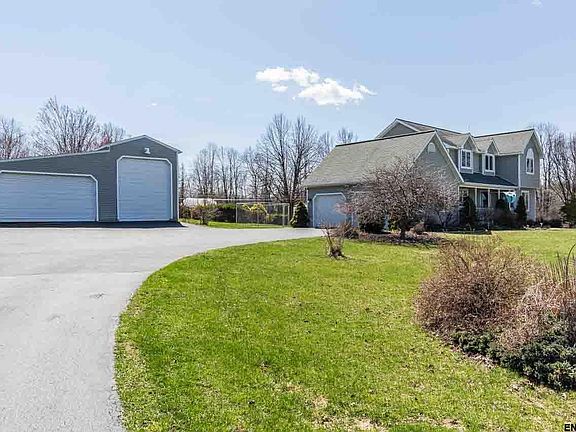 This 5 acre property not only has beauty, but functionality. 2 large garden plots, fruit trees, berry bushes, and a chicken coup with automatic door. 5 total garage bays with one big enough to host a travel trailer, Trex deck, and don't forget the heated in-ground pool. Inside the kitchen boasts a quartz counter tops with an island, first floor laundry, partially finished walkout basement with family room, den, a workshop, and a wine/root cellar. Living room with fireplace and much more! Burnt Hills Schools
