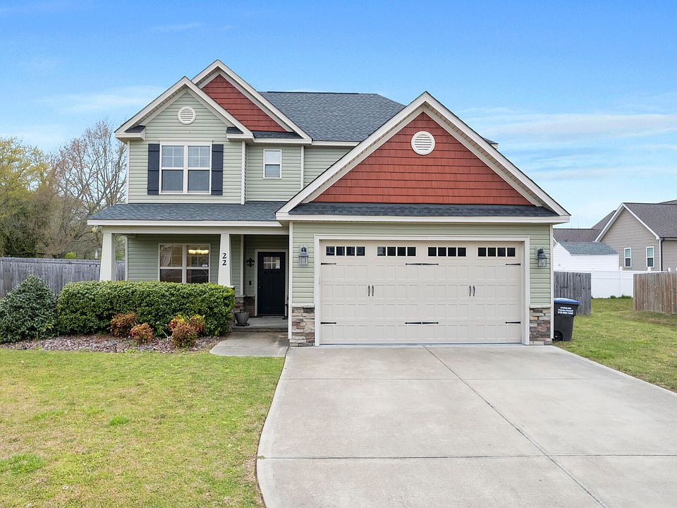 Multiple offers received! Deadline March 31st at 7pm. Gorgeous cul-de-sac home, tucked away on just over a 1/3 of an acre, charming front porch welcome guests, great floorplan, spacious kitchen, stainless steel appliances, granite counter tops, separate dining area with wainscoting, open family room with fireplace, builtin cabinets, owner suite up, trey ceiling, bath with dual vanities, 2 large additional bedrooms, no carpet!, covered back porch, flat useable fenced backyard, 2 car garage with epoxied floors, located just minutes from Campbell University!