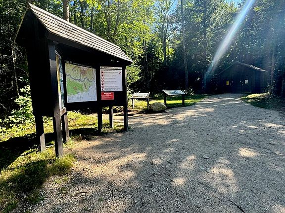 An off-grid 2-bedroom log cabin with an outhouse on 3.7 acres on picturesque Bear Notch Road right next to the White Mountain National Park.