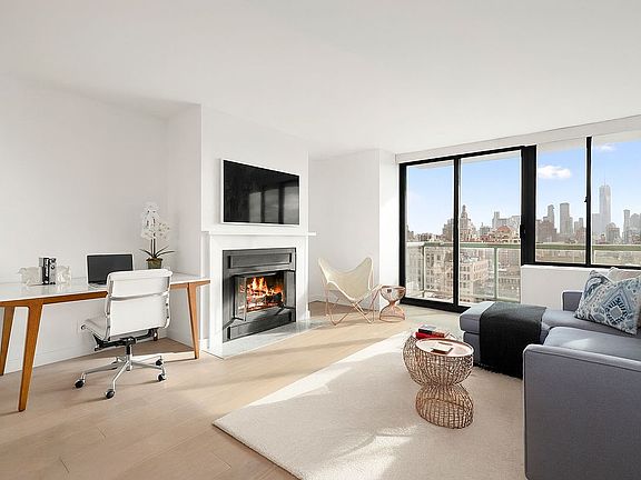 Perched way up on the 19th floor, this mint condition, stunning two-bedroom, two-full bathroom condominium with wood burning fireplace and a private terrace offers refined elegance and breathtaking unobstructed city views spanning from New Jersey to Brooklyn.