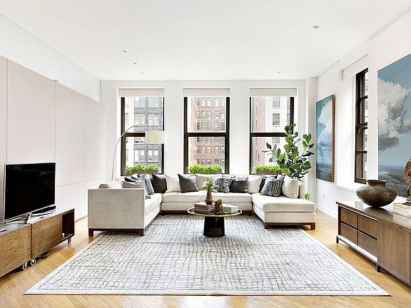 Floor plan perfection at the crossroads of Flatiron and NoMad. With 10' 5" ceilings throughout, the masterful layout of this fully renovated, 2080 sq ft, loft home provides 3 bedrooms and 3 full baths as well as a home office while retaining the classic great room loft lovers desire. Enter into a generous foyer where you'll find the first 4 (of many) spacious closets. To your right, the open, chef's kitchen features an 11' island topped with Luce di Luna Quartzite and incorporating an abundance of custom drawer and cabinet storage. Custom cabinetry continues along the North kitchen wall and the adjacent pantry providing intelligently designed, floor-to-ceiling storage. Appliances include Gaggenau wall oven, in-wall microwave, range and hood, Bosch dishwasher, and Subzero refrigerator, freezer and dual zone wine refrigerator. The first of 3 full baths is located behind the kitchen for the convenience of guests. Best of all, you'll be enjoying your time in the kitchen overlooking the expansive entertaining space of the great room with over-sized windows facing South. The bedrooms are smartly separated from the entertaining space in the Eastern side of the home. The 2nd and 3rd bedrooms are generously sized, each with custom closets. A home office is designed with plenteous, built-in storage and a beautiful wall of custom, maple book shelving. The master bed with en-suite bath features a stunning wall of custom-built, cherry closets and built-in drawers providing a luxurious dressing area. Rounding out this wing is a 2nd full bath with soaking tub, built-in closet and hamper, and a full-sized washer/dryer. Additional features include central air, motorized shades, a Lutron lighting system, and a picture rail system throughout. Amenities at this pet friendly, 20-unit, boutique co-op include a landscaped roof deck with panoramic city views, morning through evening doormen, private basement storage for rent, and free bicycle storage. Located at the intersection of Flatiron and NoMad, a block from Madison Square Park, you are surrounded by some of the city's best dining and shopping experiences and have convenient access to many transportation options.