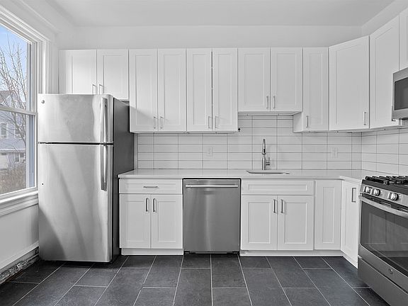 Available Immediately! Private outdoor space! Renovated charming 3 bedroom plus den (or 4th bedroom) apartment on quiet side street in uptown Bayonne. Located on the second floor / top floor of a 2-Family home - bright and airy with original details, bay window and stained glass. New kitchen with fully equipped stainless steel appliances, dishwasher, white shaker cabinets, tile backsplash and quartz countertops. Spacious bedrooms and tons of natural sunlight for a bright space! Washer/dryer in basement. Commuter's dream with nearby 45th St Lightrail station and buses for NYC and Jersey City commuters. Easy access to NJ Turnpike, back highway 440, NYC Bridges and Tunnels. Steps away from Hudson County Park and Bayonne's main street Broadway which features restaurants and shops. Call today to schedule a private tour, this home won't last!