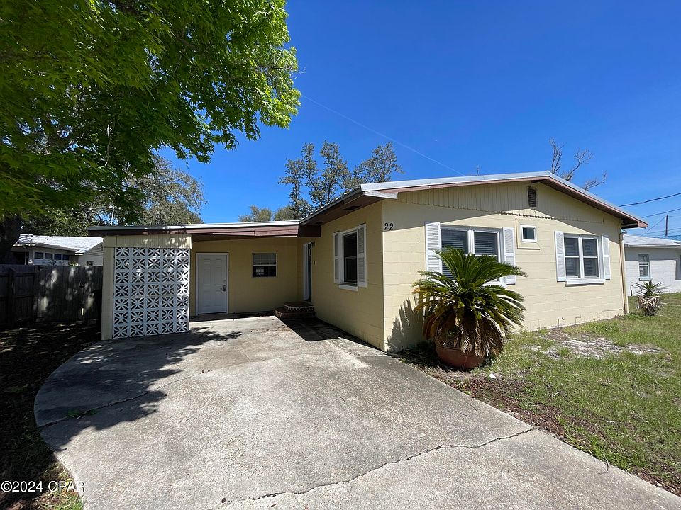 'CURRENTLY UNDER CONTRACT, SELLER WILL CONSIDER BACKUP OFFERS' must be placed at the beginning of the Public Remarks. Great investment opportunity or starter home! This charming 3 bedroom, 1.5 bath home near Tyndall Air Force Base offers a cozy retreat close to local amenities. The spacious living room is perfect for relaxing or entertaining, while the updated kitchen features granite countertops, ample cabinet space, a built-in pantry, and a breakfast nook with wood floors. The kitchen is equipped with newer appliances including a refrigerator with ice maker, stove/oven, microwave and stainless dishwasher. The master bedroom includes a convenient en-suite half bathroom, and the primary bathroom features a tub/shower combination. Outside, the fenced backyard boasts a shade tree, storage shed, and plenty of room for gardening. The Florida room is located off the third bedroom and provides natural sunlight for an added relaxation space. This home also offers a bonus storage room area with a washer/dryer hookup. Enjoy water views from the east and west from the front yard of this solidly constructed home with concrete block walls, newer metal roof replaced in 2018, and double pane windows. Just a few minutes to Tyndall Air Force Base entrance, this is a prime location for a rental investment or those working at the base! Imagine owning a property where you can store a boat/kayak and put it in the water within minutes from your home. Call today for a private showing! *All measurements approximate, verify if important.