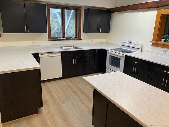 The historic home is centrally located, offering the convenience of being within walking distance to both town and Lake Pocotopaug. With two bedrooms, one bathroom, and a spacious 1,534 square feet, it provides a comfortable living space. The newly renovated kitchen with updated floors, new stove, new dishwasher, countertops, and cabinets is a great feature, especially for those who enjoy cooking. Having in-unit laundry and a private entrance adds to the convenience. Plus, with an acre of property, there's plenty of outdoor space to enjoy nature while still being close to town.