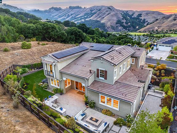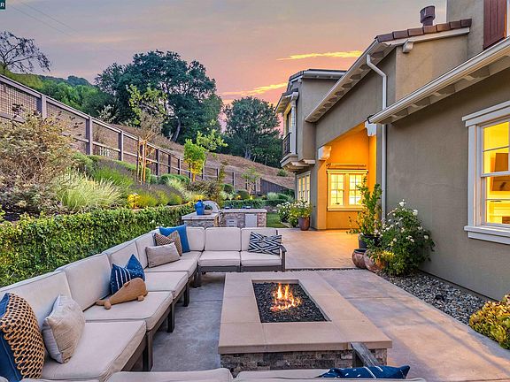 Experience luxury living at this stunning Davidon estate in Orinda’s prestigious Wilder community. This 5-bed + office, 5.5-bath residence blends modern elegance with everyday comfort, showcasing vaulted ceilings, wide-plank hardwoods, and walls of glass that flood the interiors with light. The chef’s kitchen features Thermador appliances, a spacious island, and a walk-in pantry, flowing seamlessly into the dramatic great room with cozy fireplace. The main level also offers a formal dining room with wine cellar and wet bar, an executive office, and a luxurious primary suite with dual walk-in closets, spa bath, fireplace, and direct yard access. Upstairs features 3 en-suite bedrooms, a 5th bed + full bath, laundry room, and a spacious loft with long balcony—flexible for work, play, or fitness. Enjoy a resort-style retreat with outdoor kitchen, bocce court, spa, and firepit—perfect for gatherings under the stars. Designer lighting, owned solar, a security system, and 3-car garage with built-ins complete the home. Wilder residents enjoy the Quarry House clubhouse with a state-of-the-art fitness center, resort-style pool, and 1,300 acres of preserved open space and trails.