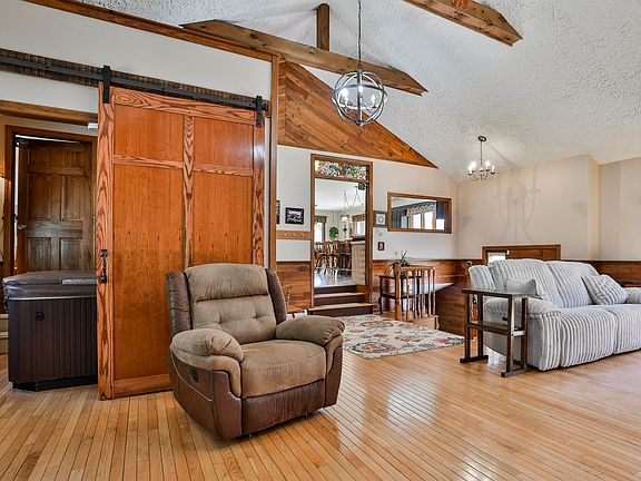 Come take a look at this well cared for multigenerational home! The spacious 2+ Acre lot is perfect for spring outings and leads to a lovely front entrance. Inside you are greeted by a massive family room with cathedral ceilings that leads you up to the massive kitchen. The kitchen is drenched in natural light and has plenty of counter space for cooking and family gatherings. Off of the kitchen is a dining room. Down the hall there are 2 Guest bedrooms serviced by a full bathroom and a primary suite complete with a 3/4 Ensuite and private access to a spa room. The rear of the house is complete with ADU potential. This suite has its own kitchen, Living room full bathroom with laundry and bedroom! The lower level has a low ceiling but is perfect for a home office or playroom. The 2 Car garage can easily accommodate 3 vehicles. There is a detached heated barn that is perfect for additional storage or a fantastic workshop! Showings Start Saturday at 12PM