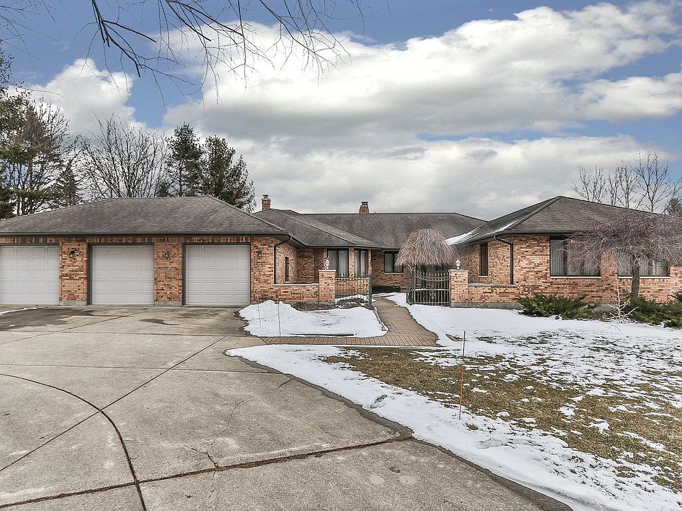 Ranch living Barrington Hills style! Set on over 3.6 acres, this all brick hillside ranch has room to roam with over 7,000 square feet of finished living space. The circular drive brings you to the private courtyard entry and into the spacious foyer. The main floor area includes formal living and dining rooms, a spacious family room with a cozy fireplace and French doors to the upper deck, a large eat in kitchen with a well placed center island and planning desk. Just off of the kitchen is a fabulous sun room boasting a built-in grill-perfect for 3 seasons of entertaining and enjoying the natural Barrington Hills views. The bedroom wing amenities includes a spacious master suite with a walk-in closet and a master bath with a double sink vanity, jetted tub and separate shower. The additional 2 bedrooms are nicely sized with a shared hall bath. The lower walk out level is an amazing space with an enormous rec room with stone fireplace, full wet bar and office area. This area also includes a 4th bedroom, full kitchen and a full bathroom with a sauna making this perfect for an in-law space, boomerang kids or nanny suite! 3 car garage plus an additional 4th bay around the back with double doors for loads of extra storage for the "big toys". A fantastic opportunity to make this Barrington Hills Estate your own.