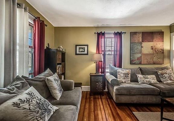Stately and meticulously maintained center entrance colonial with 4 large bedrooms along with 2 sunny and bright attached 3 season porches with additional space off 2 of the bedrooms. The hardwood floors, high ceilings and ceramic tile updated kitchen and baths The lovely fenced back yard is enhanced by beautiful land scaping and walk ways. The detached large garage is perfect for vehicles and or work room. The roof, vinyl siding and insulated windows are all new in the past few years.This home is heated by gas along with the hot water and cooking. The walk up unfinished attic could be transformed to a great room or master bedroom.