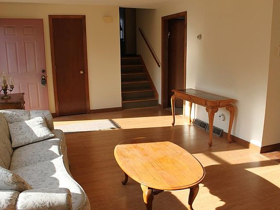Located on a dead end street, this split level home offers three bedrooms, a full bath, and an open living/dining area leading to the back deck via sliding glass doors. It also includes a partially finished basement with a fourth bedroom, living area, and brand new, never used full bath. Two car detached garage is oversized with plenty of room for additional storage. The backyard is very private, peaceful, and sparsely wooded - plenty of room for gardens of all types on this property. Central air is working, with brand new compressor, APO. Roof is approx. 8 yrs. old. Newer furnace in 2011, APO. If privacy and quiet is what you are looking for, you've found it here.