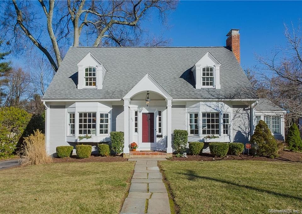 Quintessential New England Cape with 5 bedrooms and 4.5 baths located on idyllic Walbridge Road. A gracious foyer leads to large living room with a wood burning fireplace, built-in bookcases, bay window and gleaming hardwood floors, which opens to lovely sunroom. There is a spacious dining room with a corner cabinet and its own sunny bay window. The kitchen has upgraded SS appliances. The first floor master has an updated bath and great closet space. An additional good size bedroom and full bath complete the first floor. The second floor boasts three bedrooms and two full bathrooms, with one en-suite. The finished walkout lower level open to a bluestone patio, backyard and three car garage. Central air, gas heat, 2 zone heating, professionally landscaped. Walking distance to Elizabeth Park and Whiting Lane Elementary. Don't miss this beautiful home!