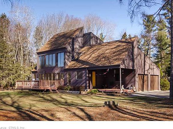 One of a kind! Unique envelope designed home provides passive solar assistance w/panoramic views of open land and brook. Acreage incl 2.38 separate lot. Comfortable home w/Solarium, deck and porch to enjoy this magnificent property. 2BRs w/balconies.