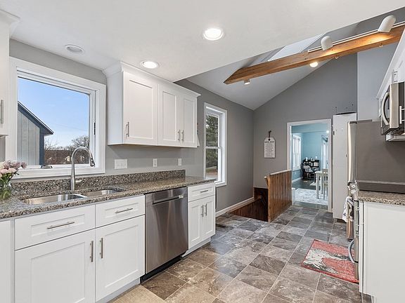 - Kit Dscrp: Flooring - Vinyl, Countertops - Stone/Granite/Solid, Cabinets - Upgraded, Deck - Exterior, Skylight, Ceiling - Cathedral, Recessed Lighting, Remodeled, Exterior Access