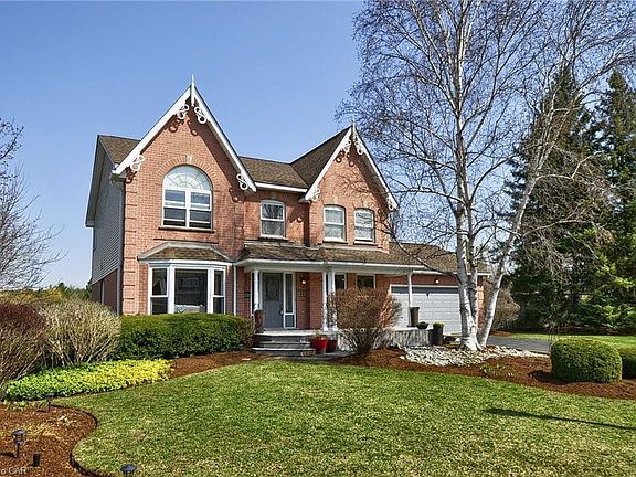 Stately 5 bedroom home on exclusive family friendly court in Doon/Wyldwoods. Minutes to the 401, at Homer Watson. Former model home, first one on court, premium lot, allows for walk out basement to Free Flow design pool, and greenspace: Schnieders Creek Trails connecting to the Walter Bean system and Huron Natural Habitat. Walk down the path to Doon Public School. Highway access, Conestoga College, Langdon Hall, Pioneer Park Plaza, (with new Joe Fresh and Shoppers stores), the Doon Heritage Village and Doon Pioneer Park Community Centre / Library are just a few of the nearby amenities. A private backyard oasis on a quarter acre landscaped lot set this one apart from a typical subdivision lot. Beds and grass watered using a programmable Rainbird 5000 sprinkler system maintained by Apollo Irrigation. Pool installed in 2005 also professionally maintained by Pool Solutions, new pump and gas heater 2020. Double garage and driveway, room for six cars. Welcoming front porch and foyer entrance, four spacious bedrooms up, impressive ensuite bath with corner windows facilitating lovely views from soaker tub. Main floor laundry, walk out off kitchen to balcony and more of the breathtaking view. Carpet free main floor also includes an office/den work from home space, formal dining area, and laundry/mud room off the garage, (lots of storage and work space there too). Partially above grade walk out basement includes a fifth bedroom, three piece bath and a large open rec-room walking out to deck and pool. Recent updates include quartz kitchen counter top, new broadloom, luxury vinyl tile flooring in bathrooms and new hot water heater. Electrical rough in for hot tub off newer 200 amp panel. Shed, Central vac, reverse osmosis water filtration, window coverings, water softener and appliances including convection oven are all included. Amazing location, unique premium lot, curb appeal, fantastic neighbours. A large, inviting, family home ready for its next family :)