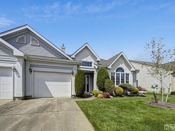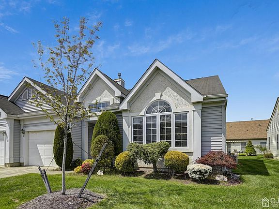 Resort style living welcomes you to the 55+ Greenbriar at Whittingham community. Fairfax model 2 bedroom 2 bath home has been tastefully upgraded with engineered hardwood flooring throughout. The sun shines in to the open concept living/dining room and leads to the kitchen with newer ss appliances and granite counters. The family room has a woodburning fireplace for those cool days/nights and a door to the outdoor patio for enjoying the warmer weather. Master bedroom with 2 WIC, full bath offering double sinks, stall shower and a luxurious soaking tub. 2nd bedroom great for home office/guest room. Amenities galore include a clubhouse with restaurant, indoor & outdoor pools, tennis courts, pickleball, fitness center, 9 hole golf course with optional membership fee, 24hr security and on site nurse. Be prepared to fall in love with this beautiful home and community. Virtual showings available.