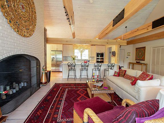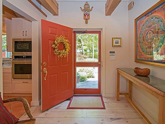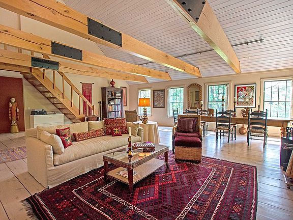 Privately sited on a wooded parcel filled with birdsong, this extensive 6 acre property features perennial gardens, stone walkways, an ample stone patio and an expansive back lawn with pond. The open floor plan home boasts a renovated chef's kitchen with 11 foot quartz countertop, stainless appliances, Shaker-style maple cabinetry with numerous drawers and a pull-out pantry. The expansive great room features 22 foot ceilings, massive oak beams, a generous brick hearth, and pickled wide board floors and ceilings. Ideal for entertaining with multiple windows and French doors which open out to a large back deck overlooking tranquil views of the lawn and pond. An interior oak staircase leads to unfinished attic space with many expansion possibilities. The sunroom off the kitchen offers year round light and warmth with a 15 foot gabled ceiling and windowed walls facing south and east. Custom maple flooring, Douglas fir beams and French doors opening out to the deck make this an extra special living space. Both main bedrooms are on the entrance level floor. The master suite features a generous walk-in closet with built-in drawers and shelves. Multiple windows provide abundant light and views of the pond. The ensuite windowed bath is the perfect place to relax in the Waterworks jacuzzi tub. Other highlights include a marble-topped vanity and glass shower with high end fixtures.The second bedroom enjoys custom built closets, an adjacent fully renovated bath with a large shower and a teak fold down bench, marble floors and a built-in vanity. A maple staircase leads to the lower bedroom/office with wood floors and custom-built bookshelves. French doors open to a charming patio bordered by woods and shade gardens. Adjacent is a large finished walk-out space with polished concrete floors, multiple windows, and built-in shelves and cabinets. Perfect as a gym, artist's studio, guest room, office or gallery, this flexible space also features its own finished half bathroom, and a separate work area with pegboard walls and a utility sink. Solidly built and immaculate, this home also has a new high efficiency furnace, two above ground oil tanks, central air and central vacuum. A separate 3 car garage with an unfinished skylit loft provides a great place for all your vehicles and more. A rare offering, this tranquil contemporary cape is 90 minutes from NYC, 5 from the Taconic Pkwy, and 15 minutes to Rhinebeck and Millbrook. The perfect abode for full or part-time living.