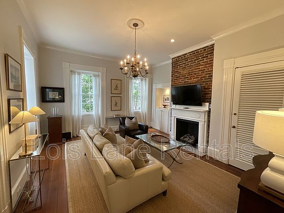 Fully furnished luxury townhome located in the desirable Ansonborough neighborhood, just steps from Charleston's best restaurants, shopping, galleries, and more. Originally built in 1840, this beautifully preserved home offers historic charm alongside modern comforts. You enter this 2-bedroom, 2.5-bath home through a private gate and are welcomed by a foyer and staircase that leads to the second-floor living area. The second floor features an elegantly furnished living and dining room, along with a galley-style kitchen. Off of the living room, there's a half bathroom and a private balconyperfect for enjoying the Charleston weather or entertaining guests. Upstairs, the third floor includes the primary bedroom with a king bed and en suite bathroom, as well as a second bedroom with a twin daybed, desk, and its own en suite bathroom. A stacked washer and dryer are also conveniently located on this floor. One off-street parking space is included, located just off Anson Street. Pets may be considered with approval via PetScreening and with a pet fee. Available now for a 90-day minimum rental, up to one year. All utilities are included. $75 application fee per occupant 18 or older.