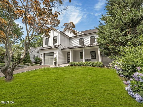 Stunning Modern Farm House (one of the first in Riverside) Newly built with many extras on a quiet street, convenient to I-95, shopping, and schools (North Mianus & Eastern Middle School). Three extra-large ensuite bedrooms and lovely third floor loft with full bath and closet can be 4th bedroom or office. Fully finished walk-out lower level with additional full bath could accommodate 5th Bedroom in addition to a Bonus Room for Playroom /Gym. Retractable Full Wall Patio Doors lead to Private Fully Fenced Tree Lined Backyard, *Extras Include: Energy Efficient Spray Foam Insulation, Anderson Architectural Series Windows,Built-in Miele Coffee System,Tesla Power Charger,Custom Stairs/Cabinets, Radiant Heat (Bathrooms),Tankless Water Heater,Central Vacuum, Inground Sprinklers, Nest Thermostats