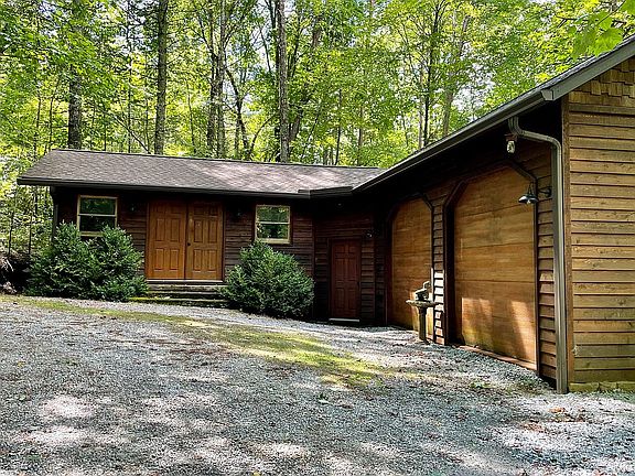 Gorgeous custom built 3BR, 2 bath log sided home on 2 private wooded acres in the lovely community of Sylvan Lake Falls. Lots of room in this home, on the main level, is living room with post and beam ceilings which is open to the kitchen and has updated stainless steel appliances, KitchenAid gas range, quartz countertops and backsplash. Kitchen island has room for four to dine. Across from the kitchen is a huge pantry cabinet. Also on this level is the master bedroom and newly remodeled bath, laundry room, and a huge added on family room with a large dining area all surrounded by windows. Upstairs is a generous loft, another bedroom and remodeled bath, and another huge room that can be used for another master bedroom or game room. It also has a wall of windows, vaulted wood ceilings, and built-in custom cabinets. Outside is over 1000 sq. feet of deck space that would be great for outdoor entertaining, plus a detached oversized 2 car garage with an attached 300 sq ft studio/workshop. This house has so much to offer, come and enjoy the peace and quiet of the mountains.