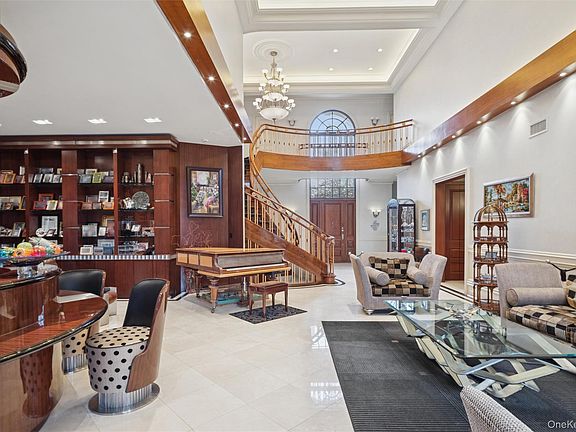 This prestigious brick colonial set on over an acre is in the exclusive village of Woodsburgh. This one of a kind home features 9 bedrooms, 9 full bathrooms, 3 half baths, and is perfectly designed for grand entertaining! Arrive through a stately circular driveway, flanked by two separate two-car garages (4 total) positioned on either side of the residence. Enter the breathtaking expansive foyer with soaring ceilings and experience the elegance of luxury living. With an open floor plan and attention to detail the home showcases 10 foot ceilings and 22 feet in the grand living room which boasts an adjacent library.