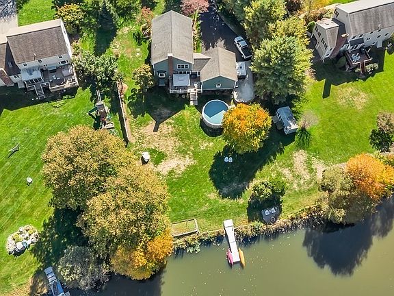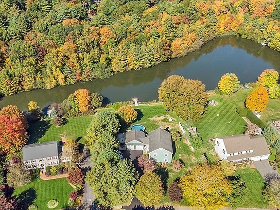 GORGEOUS WATER VIEWS of spring-fed Windchime Pond inspire relaxation & expressions of awe in this 4-BR, 3-full BA Colonial situated on 1.43 acres. Expanded composite deck w/multiple spaces to entertain overlooks your paradise with landscaped gardens & lawn, AG pool, firepit & floating dock on swimmable, fishable pond w/non-motorized boat access! Entertain family & friends in an AMAZING SETTING inside and out! Stunning, glossy, hardwoods w/inlaid decorative design featured on much of 1st floor. Family Rm displays a custom-made mantel w/river rock surround & pellet stove, atrium door & bay window. Behold a Cook’s Kitchen w/high-end SS appls, granite,TONS of cabinetry & bar-height peninsula. Formal Dining Rm w/refined box & crown molding & french doors lead to a private Living Rm retreat. Wake up to a VIEW LIKE NO OTHER in your light-filled Master Bedrm ensuite. 3 more Bedrms w/double closets. 300sq.ft. Bonus Rm in L.Lvl. TOO MANY UPDATES & BENEFITS TO LIST!