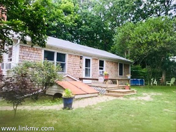 Remarkable well maintained 3 bed ranch in Vineyard Highlands neighborhood of Oak Bluffs on beautiful Marthas Vineyard!! Several updates w/ current owner from new Anderson thermal double hung windows added in 2004 to beautiful custom hand laid rear patio completed just 2 months ago! Warm & inviting bamboo composite hard wood floors to new lower maple cabinetry in kitchen. Home was raised off foundation in 2004 for the current poured concrete foundation to be elevated adding substantial value to it's now 10' extended ceilings in the partially finished basement offering tremendous addtl. storage room for all of your family's, beach, fishing & boating needs! Brand new tiled bathroom floor Just Finished adds to this homes comfort & charm along w/ the gorgeous new re-claimed mahogany front porch! 3 good sized bedrooms on 1st floor w/ a finished 4th bonus room/office in basement. This home offers economical propane primary heating system w/ electric back-up. Addtl. fantastic outdoor shower!