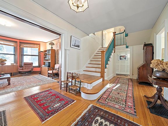 Set in a prime West Newton Hill neighborhood is this gracious Victorian home. Surrounded by mature trees and plantings, the house has maintained much of its original character and charm. Many windows and tall ceilings provide an abundance of natural light. Welcomed by a full length front porch, the entry foyer opens to a large front parlor that is flanked by a charming den with bay window and an elegant living room with fireplace. There is a formal dining room with window seat and access to a large deck. The lovely kitchen features butcherblock counters, a pantry, and accesses a delightful solarium overlooking the expansive grounds. A grand stairway leads to the second floor with three bedrooms and two baths including a primary bedroom with fireplace and bathroom. The third floor is finished with a 2 br accessory apartment suite. Amenities include seller owned solar panels, upgraded HVAC & Electric, detached garage. Easy access to Mass Pike, Village Shops & Cinema, Commuter Rail.