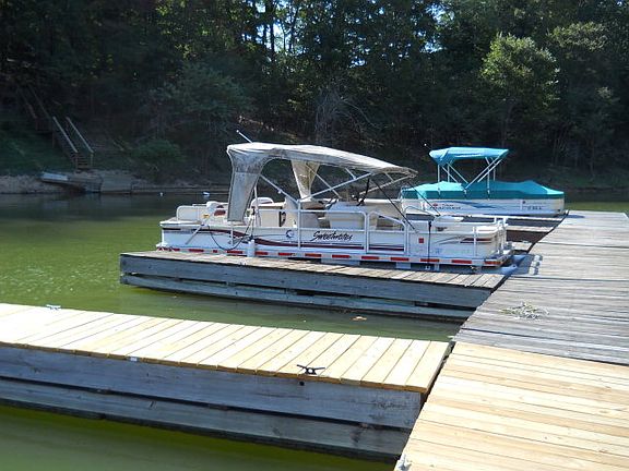 Boat slip with corps approval. A/C unit - 4.5 years old, new water heater, electric panel box replaced 2-3 years ago, not a mobile home. The home is on 6x6 treated wood posts in concrete. Kitchen appliances and some furniture will remain. Detached carport w/electric. Upstairs is not heated. Owner uncertain if exterior is wood.