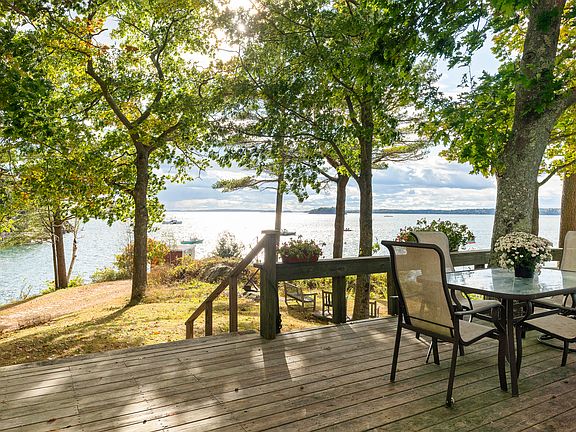 Nestled on the rugged coastline of Harpswell, this breathtaking property is a rare gem that perfectly captures the essence of Maine's coastal beauty. Perched on the waters edge, it offers deep waterfrontage and a deeded walking path down to Wood Landing Cove. The 270-degree panoramic views are nothing short of extraordinary, stretching from the tranquil waters of Middle Bay to the open ocean beyond. Every day offers a new sight, from lobster boats working the bay to picture-perfect islands that draw photographers from all over. The views never stop impressing—sunsets bathe the landscape in golden hues, and every direction you turn offers it's own special beauty.