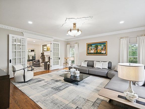 A grand two-story entry foyer sets the tone for the spacious, sunlit interior. The first-floor features oversized rooms, perfect flow for entertaining, a gas fireplace and gourmet kitchen with gas cooking, and a stunning conservatory with walls of glass, cathedral ceilings, and French doors leading to a private patio. Ideal for multigenerational living, the home includes a first-floor bedroom and full bath, along with an elevator that services all levels. Upstairs, the luxurious primary suite offers a sitting room with fireplace, multiple custom closets, and a spa-like bath.