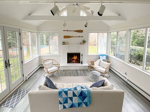 Charming classic cape on tree-lined street, steps to downtown. The 3 bed, 2 bath home is set back behind a mature evergreen hedge, on an expansive beautifully landscaped lot, with heated in-ground pool. Filled with natural light, the downstairs of the home has cathedralceilings in the eat-in-kitchen, a large room with fireplace and french doors leading to the pool/yard, den/TV room with wood burning stove, and 1 bedroom and a bathroom. The upstairs has 2 more bedrooms and a full bath. Attached one car garage. Great opportunityto be in a charming Bellport home on a quiet street, close to downtown.