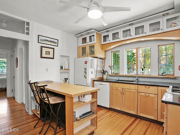 This charming home is located on a quiet street in Springdale. Inside the enchantment continues with hardwood floors, arched doorways and built-ins. It offers a light and bright, spacious first level including a main floor bedroom that could be utilized as the primary bedroom. The dining room, with built-in corner cabinets, leads into the recently updated kitchen. The living room has a wood burning fireplace with built-in shelves. The Family Room is surrounded with bookshelves. Large glass doors, leading to a sizable patio, let you out into the private fenced backyard. Upstairs you will find 2 bedrooms, along with a full bath and hardwood floors throughout. Exterior painted in 2021. Close to Springdale train station, schools, shops and restaurants.