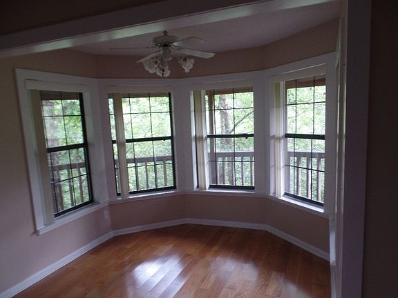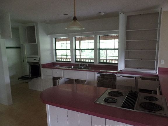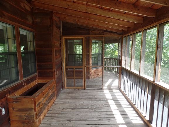 3Br/2Ba with wrap-around porch in county setting. Large kitchen with bay window dining area. Den has built-ins and a wood stove. Portion of porch screened in with shades and hanging day bed.