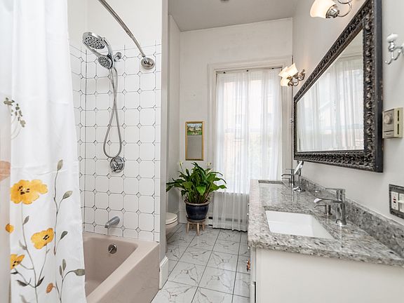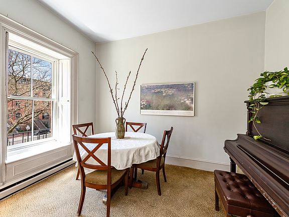 Located in Boston's historic South End in beautiful Worcester Square, this inviting two-bedroom residence is filled with period details and updated with modern conveniences. Facing southwest, it overlooks the fountain in the square and is flooded with natural light, accentuated by the high ceilings and large, new Andersen windows. Original antique hardwood floors and ornate window casings throughout. The living room is oversized and features a marble fireplace with electric fireplace insert. French doors open onto the dining room which could function as a bedroom or library. Well-appointed kitchen has granite countertops and stainless steel appliances with gas range. The bedroom features a luxurious spread of California Closets and is adjacent to the full bathroom with granite-topped double vanity and laundry closet with Bosch appliances.
