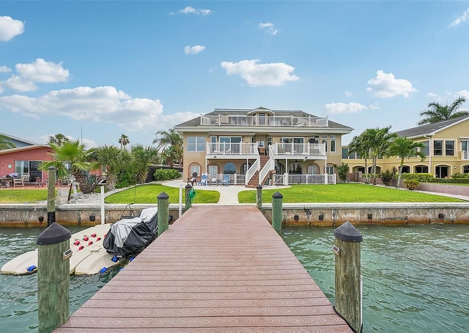 Welcome to waterfront living at its finest! This stunning condo, featuring 2 bedrooms and 2 bathrooms along with a separate 1 bed 1 bath unit with a kitchenette, boasts panoramic views of Johns Pass and the renowned sandbar, offering a picturesque backdrop for everyday relaxation. With an attached garage, boat slip, and dock, this residence provides seamless access to the boating community and the nearby beach. Step inside to discover a recently updated kitchen, featuring a chic coffee bar, spacious island with an overhang, and brand-new appliances. The open floor plan seamlessly flows into the dining area, creating an ideal space for entertaining guests. Additional highlights include a stylish bar with a wine cooler and quartz countertops. Recent upgrades include a new flat roof (2023), updated bathrooms with new plumbing and electrical (2021), and a studio conversion with one bedroom, kitchenette, and bathroom, perfect for accommodating guests or generating rental income. Enjoy the convenience of a new deck with a hurricane impact sliding glass door and retractable sunshade (2020), offering the perfect spot to soak in the stunning waterfront vistas. This condo offers the ultimate in waterfront living, with most windows featuring hurricane impact grade glass to ensure peace of mind during stormy weather. Experience the serenity of Eleanor Island from the comfort of your deck or dock, and relish the convenience of having your own private space for guests or rentals. With its spacious kitchen and entertainment area, this condo is tailor-made for hosting gatherings or simply unwinding in style. Wake up to breathtaking water views from the master bedroom, and savor the tranquility of Boca Ciega Bay every morning. Don't miss out on this extraordinary opportunity to own a waterfront sanctuary in one of the most coveted locations in town. Schedule your showing today and experience the epitome of Florida waterfront living!