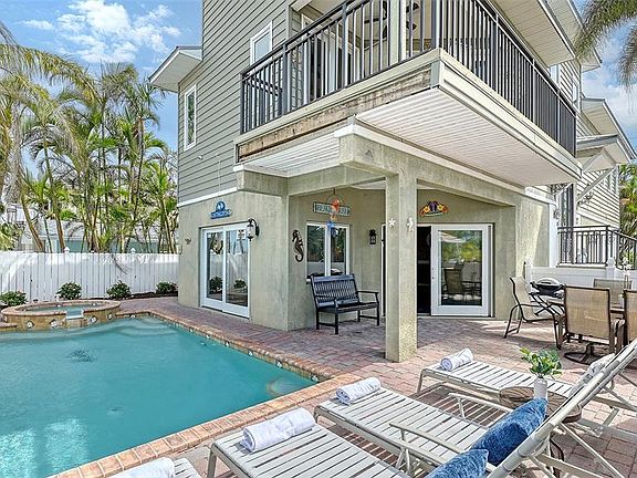 The Ultimate Gulfside Retreat on Holmes Beach, Anna Maria Island! NO WATER INTRUSION IN MAIN LIVING AREAS FROM RECENT HURRICANES and NO HOA! Just 200 feet from the sugar-sand shores and turquoise waters of the Gulf of Mexico, this updated, coastal-inspired three-level beach home with a private elevator offers the perfect blend of luxury, comfort, and investment potential. With over 2,000 sq. ft. of bright, open living space, 3 bedrooms, 3.5 baths, a private pool and hot tub, and sweeping Gulf views from your balcony, this is truly the ultimate island escape. Currently a high-performing vacation rental generating over $120,000 annually with future bookings in place, this property also makes an ideal primary residence or second home. Offered fully furnished—including sleeper sofas—it’s ready to comfortably accommodate family, friends, and guests. The main level boasts a light-filled open-concept living area with large windows and sliding glass doors overlooking lush tropical landscaping. The chef’s kitchen features newer stainless-steel appliances, dual refrigerators, expansive granite counters, a wine cooler, and walk-in pantry. Entertaining is effortless with a breakfast bar, indoor dining space, and outdoor dining options. The primary suite on this level is a private retreat with dual walk-in closets and a spa-style ensuite bath featuring both a shower/tub combo and a separate walk-in shower, plus a water closet with bidet. Take the private elevator to the upper level where you’ll find a second primary bedroom with ensuite bath and walk-in closet, a third spacious bedroom, an additional full bath, and a laundry room. The ground floor welcomes you with a large foyer and a versatile flex space—perfect for storage, crafts, or a media room—along with access to the oversized 2-car garage. Additional upgrades include a reverse osmosis system and three newer air conditioners for consistent comfort throughout the home. Step outside to your private, fenced outdoor oasis, complete with sparkling pool, bubbling hot tub, and plenty of seating for lounging or alfresco dining while enjoying the Gulf breezes and breathtaking sunsets. Perfectly situated at Holmes Beach with its vibrant shops, restaurants and beaches, and less than 2 miles from the shops beaches and restaurants of Bradenton Beach—and just steps from the Gulf. Longboat Key, Sarasota, Siesta Key and SRQ Airport are also close by. This rare property combines island living at its best with proven rental income. Schedule your private showing today—your Anna Maria Island paradise awaits!